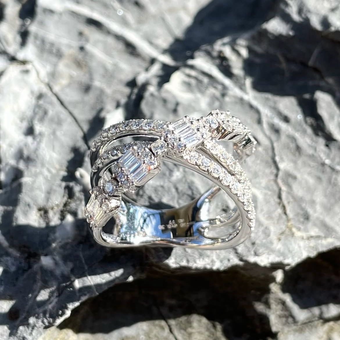 Lovelotsdiamond Fine JewelleryBold Cris Diamond Ring(Free ring alteration)18k white goldDiamond 1.07 caratBrand new l Ring size HK 13.5Original Price 9500 sgdPrice now 3990 sgd l 3150 usdLLC-818All Enquiries +65 83883777