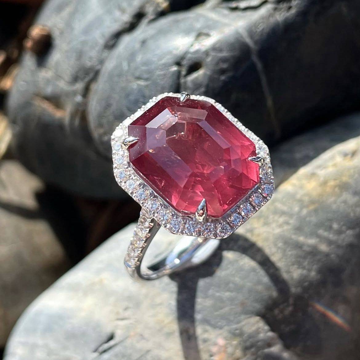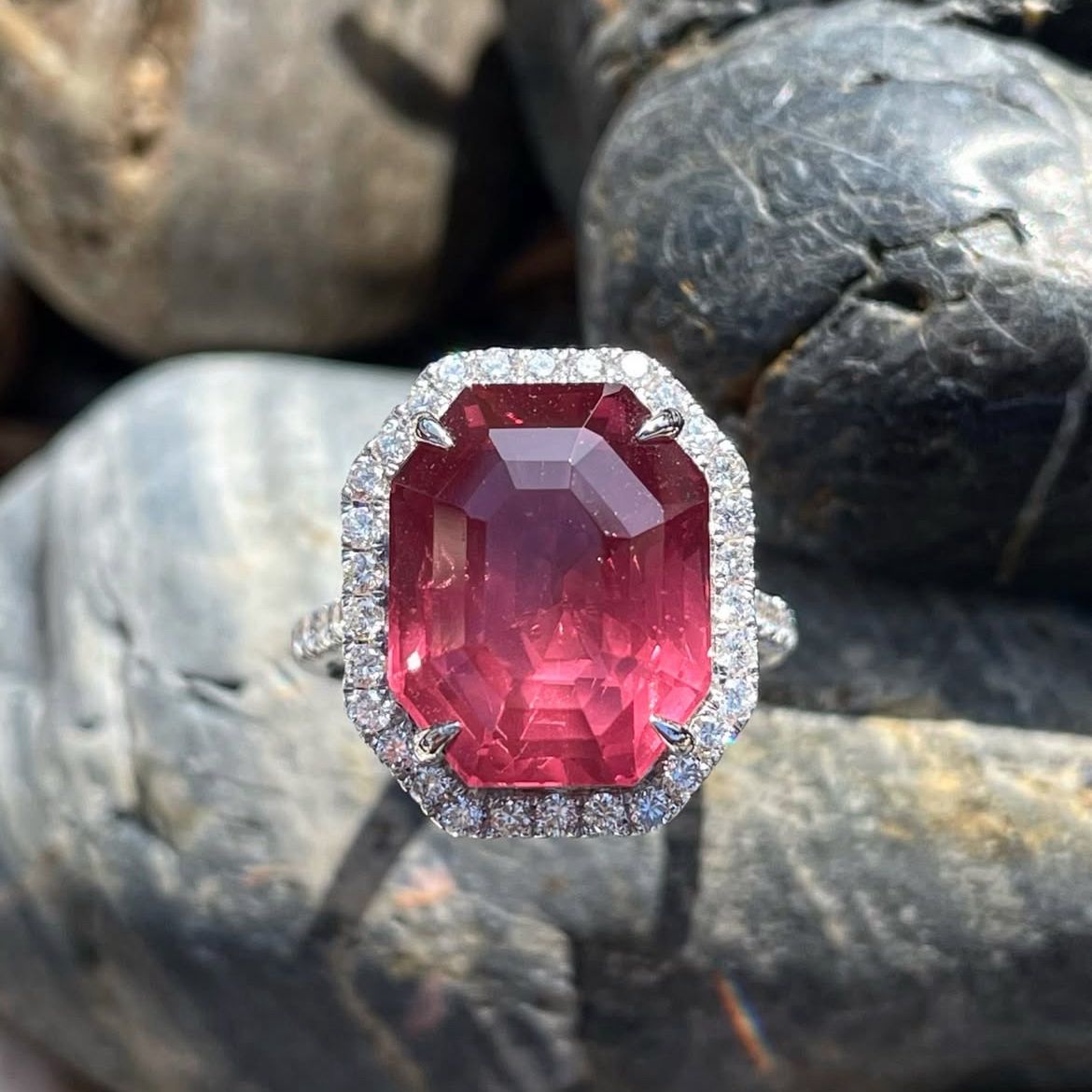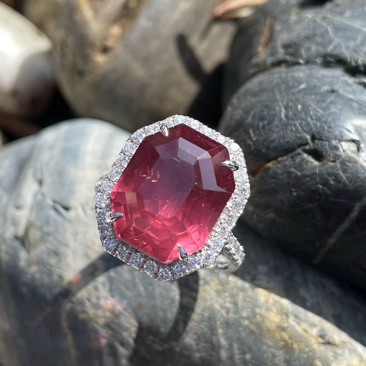Calm Wine Spinel Diamond Ring