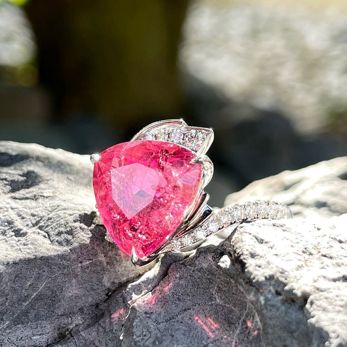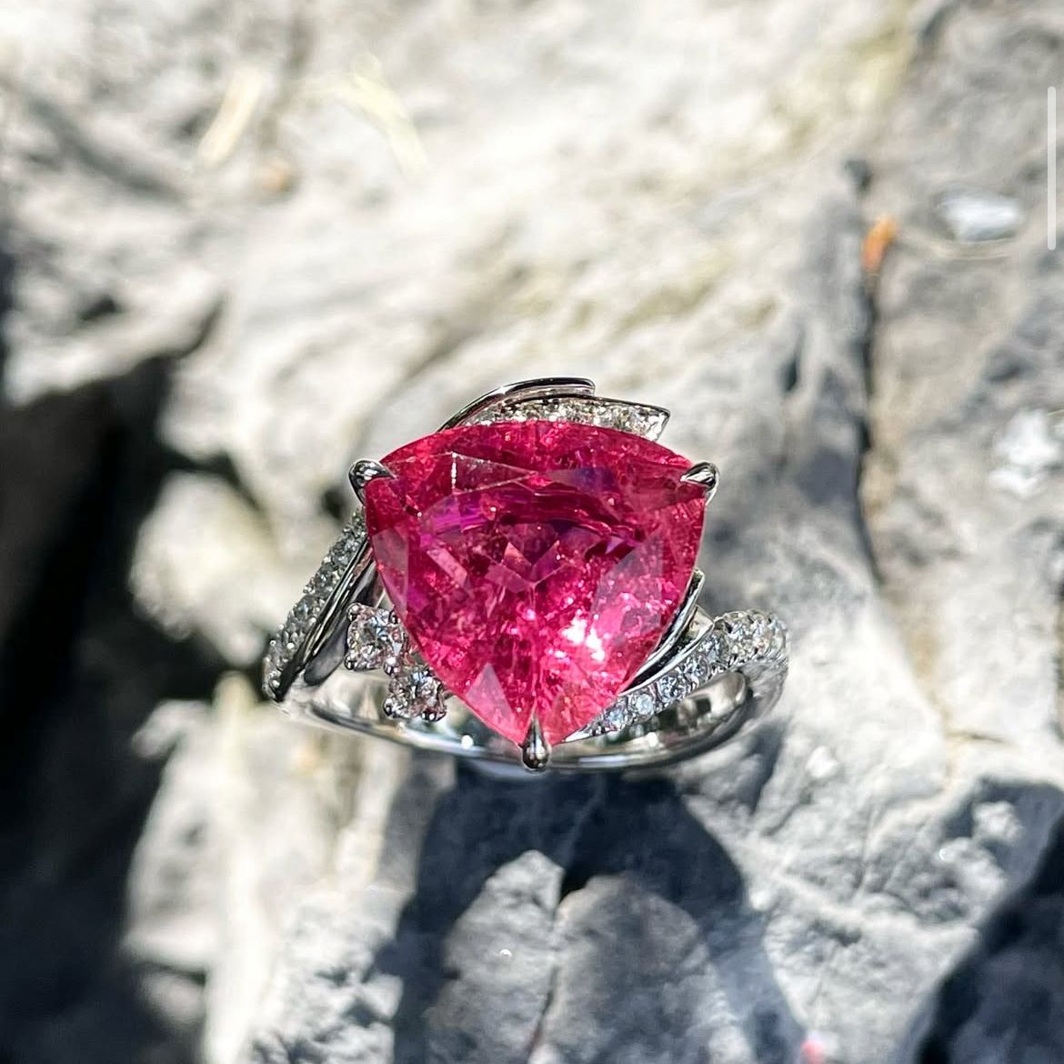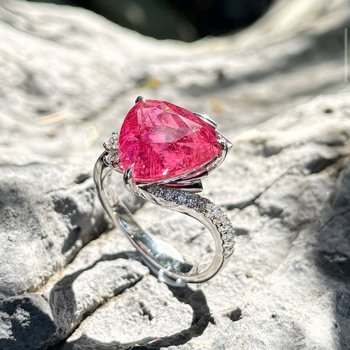 Trillion Pink Tourmaline Diamond Ring
